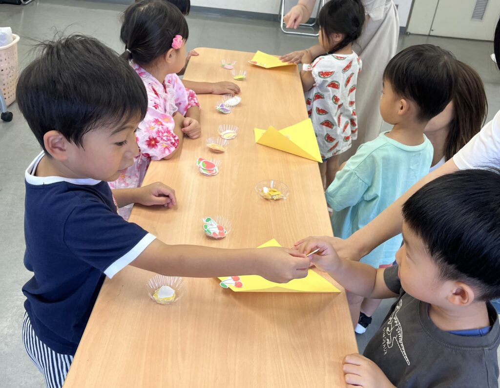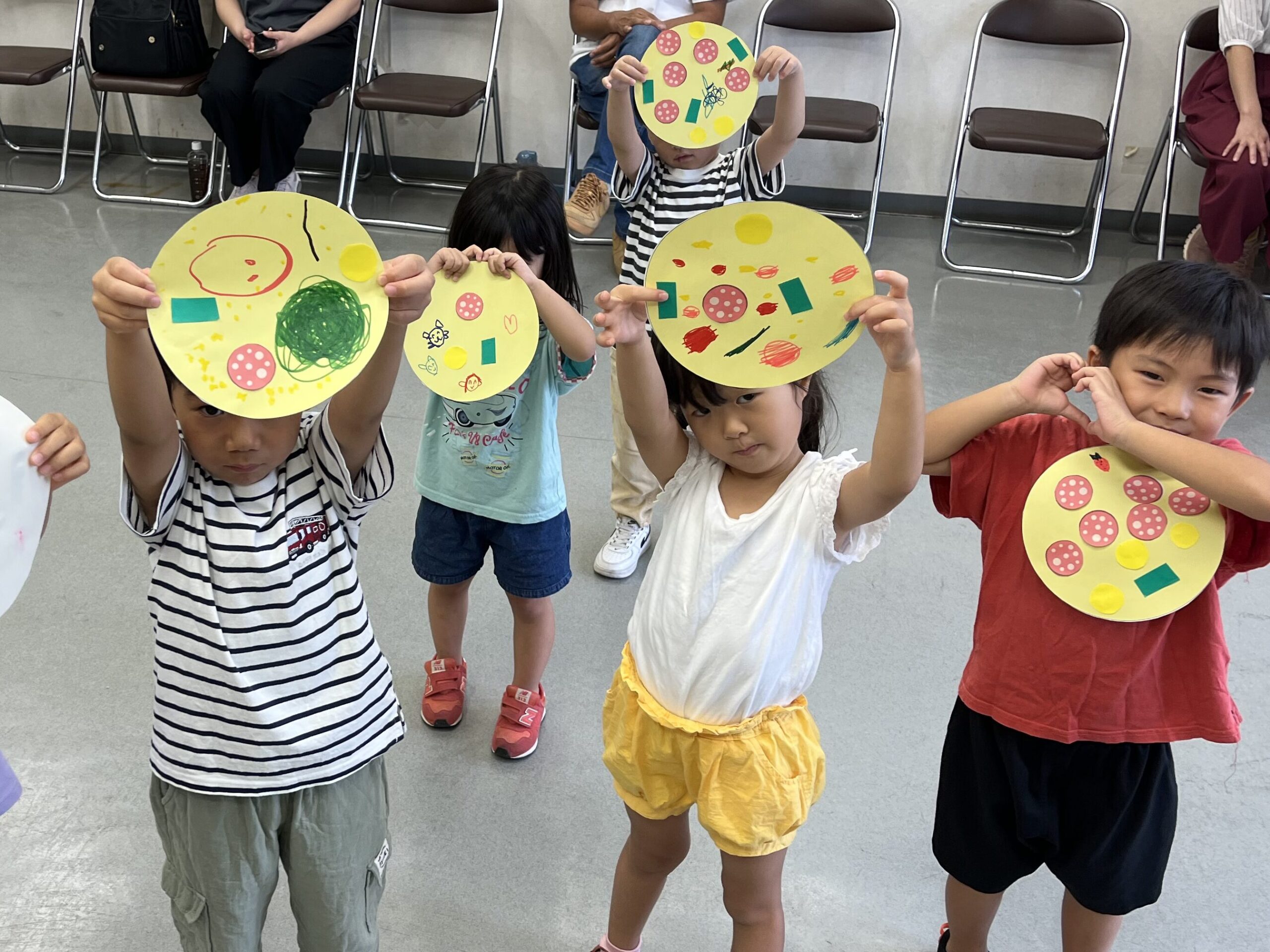 「What doyou want?」 「〇〇Please.」のやり取りでピザのお店屋さんごっこもしました!